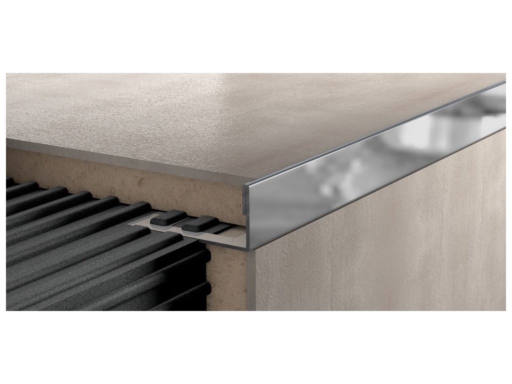 „L“ LIŠTA je speciální profil pro účinnou ochranu před poškozením, pro zdobení vnějších okrajů obkladů a jiných krycích materiálů. K dispozici je nerezová ocel s různými povrchy. Zatížení je odkloněno speciální konstrukcí profilu se speciální tloušťkou materiálu.
