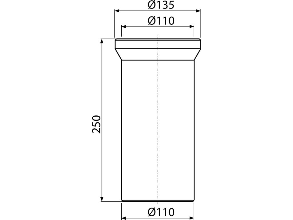 ALCA Dopojení k volně stojícímu WC, přímé, DN 110, délka 250 mm, PP, bílé A91-250