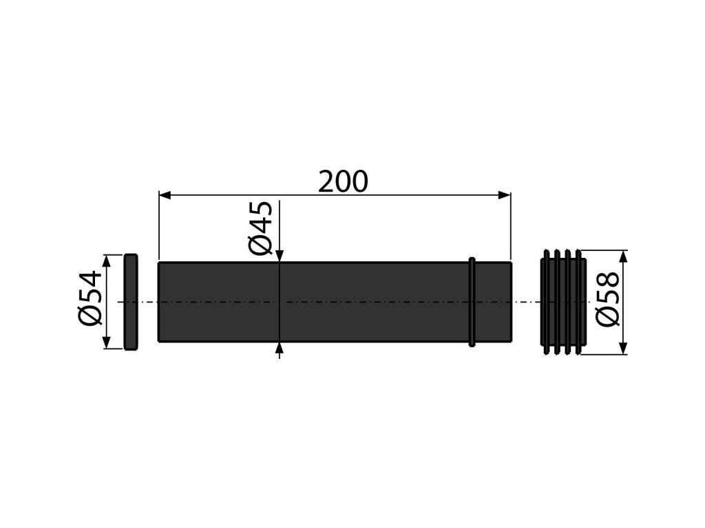 - Propojka pro napojení závěsné WC mísy k přívodu vody z nádrže, polypropylen, Ø45 mm