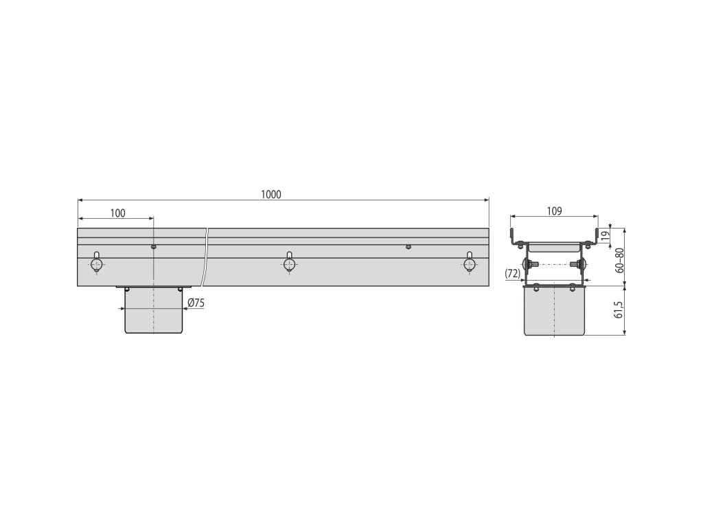 - Výškově nastavitelné tělo žlabu 60–80 mm