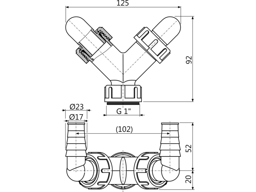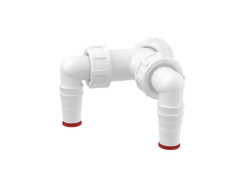 ALCA Dvojité kolínko G 1" × Ø 17–23 mm pro napojení pračky a myčky na sifon P148