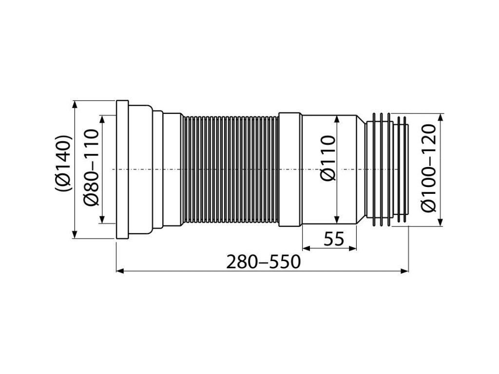 ALCA Flexi napojení k volně stojícímu WC, 80–110 mm × 90–110 mm, délka 280–550 mm, PP, bílé A970