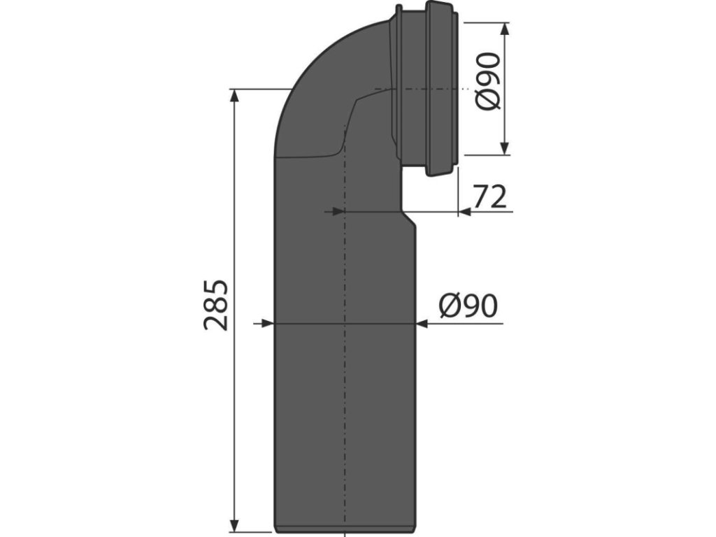 ALCA Koleno odpadu 90° k závěsnému WC, Slim, DN 90 × DN 90, délka 285 mm, PE, černá M968