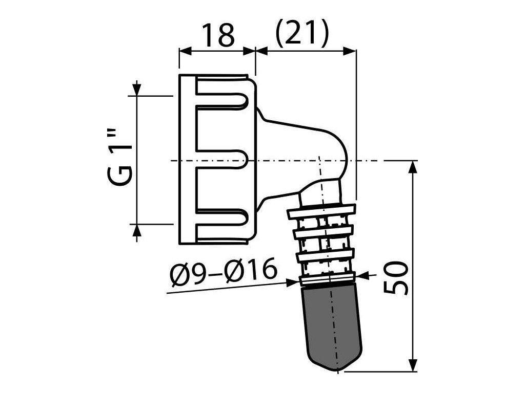 ALCA Kolínko G 1" × Ø 8–16 mm pro napojení sušičky na sifon P0049-ND