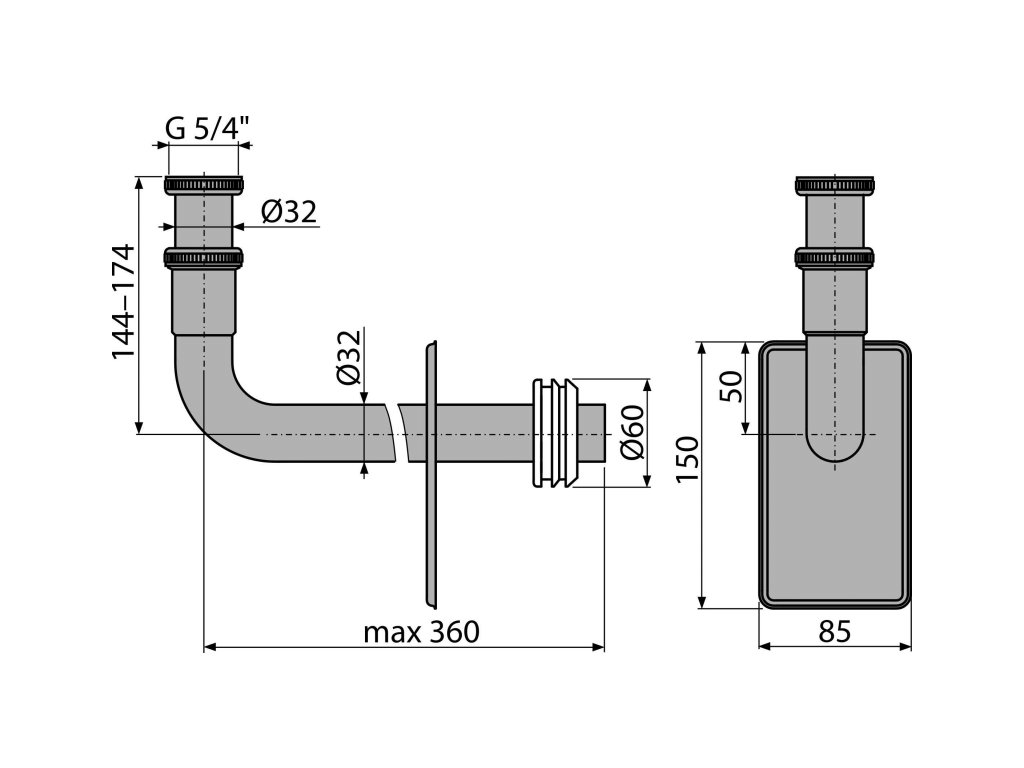 ALCA Kovové koleno pro podomítkový sifon DN 32 s převlečnou maticí G 5/4" A438