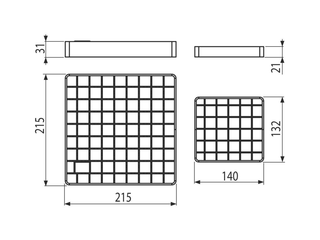- Rozměry roštů 215×215 mm, 132×140 mm