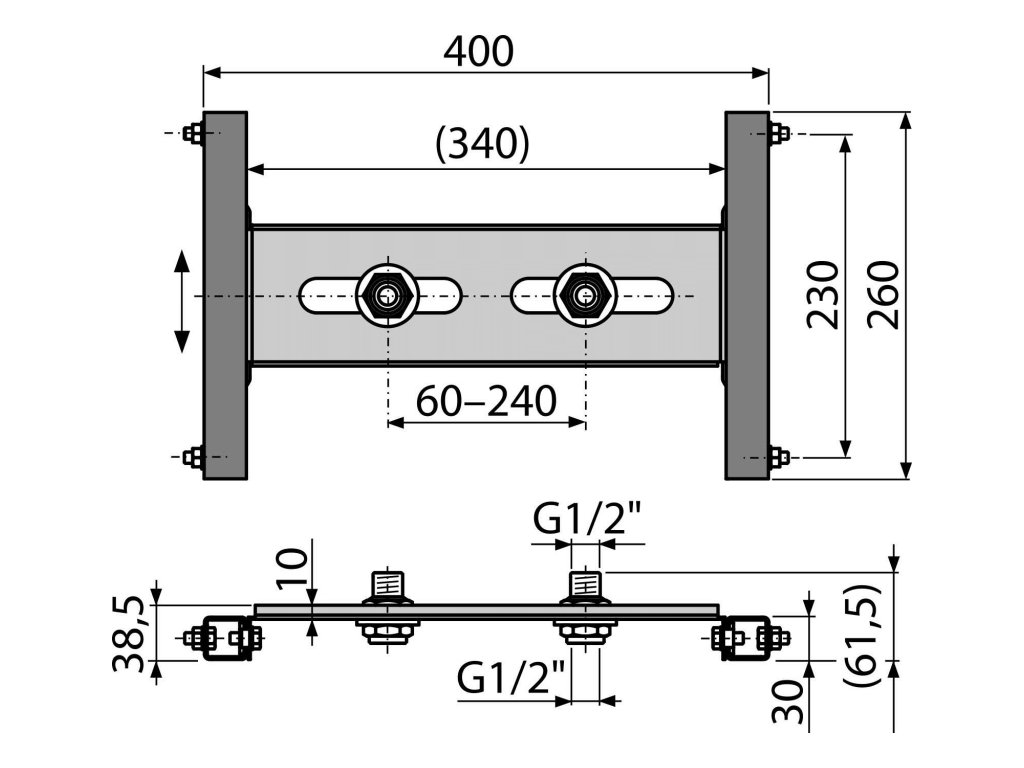- Příčka pro uchycení nástěnné armatury s roztečí 60–240 mm