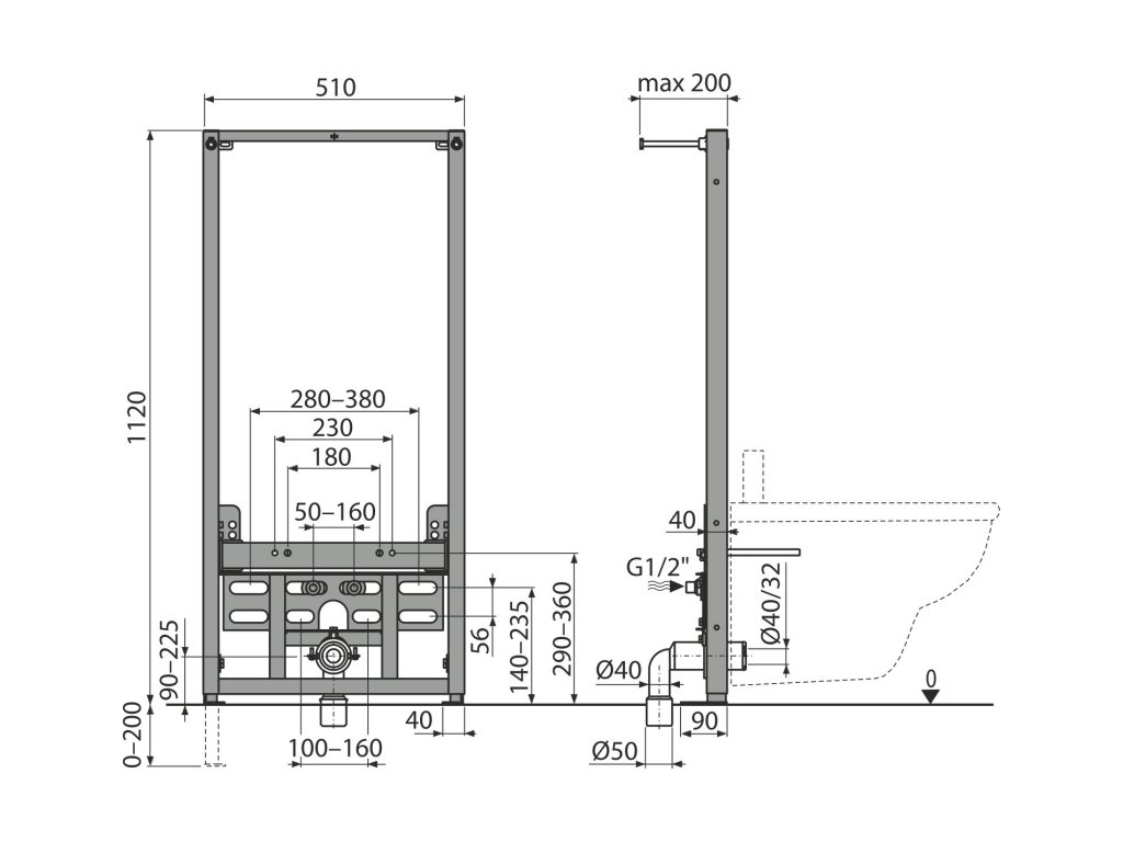 ALCA Montážní rám pro bidet A105/1120