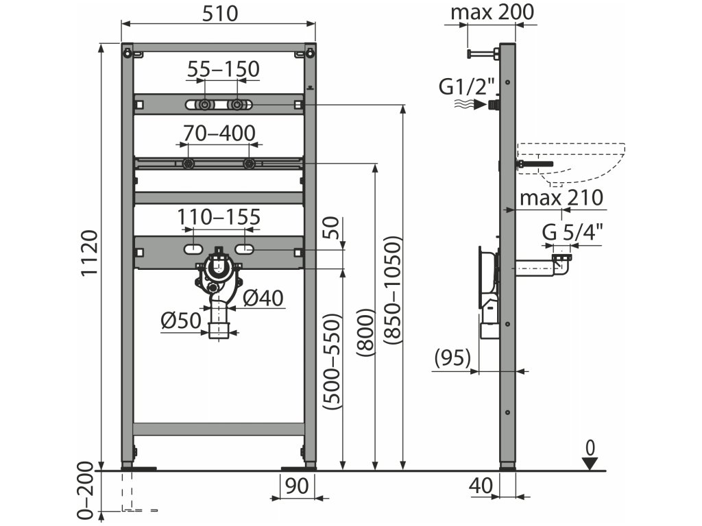 ALCA Montážní rám pro umyvadlo a baterii s vestavěným sifonem A104AVS/1120