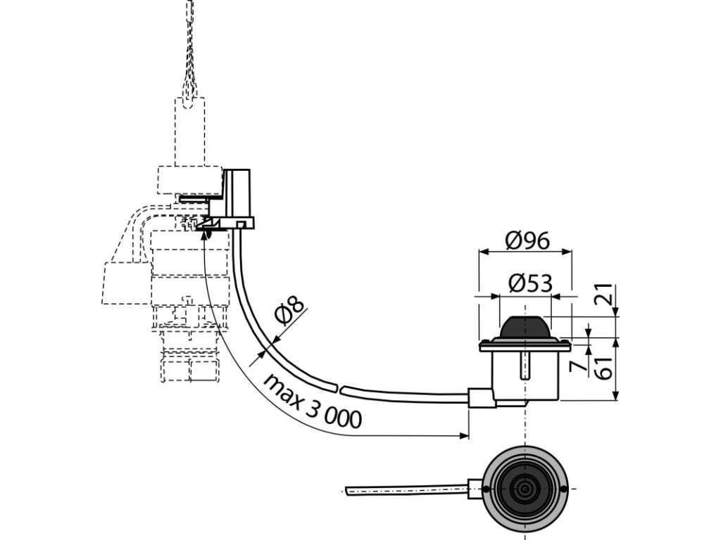 - Hadička 3 m pro propojení tlačítka a vypouštěcího ventilu
