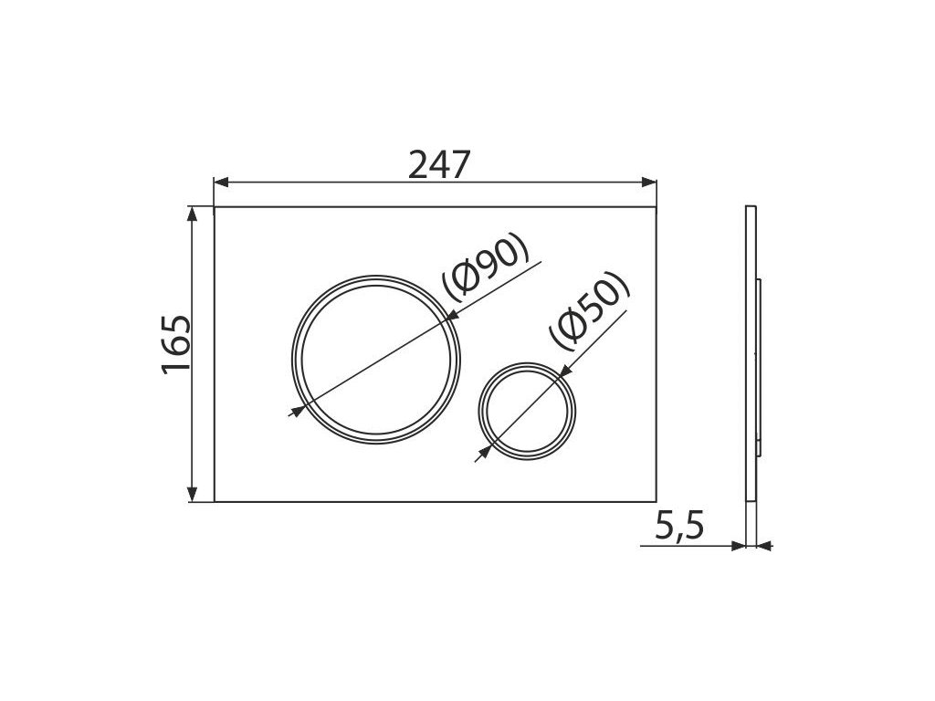 - Tlačítko minimálně vystupuje nad obklad díky tlouštce pouhých 5,5 mm