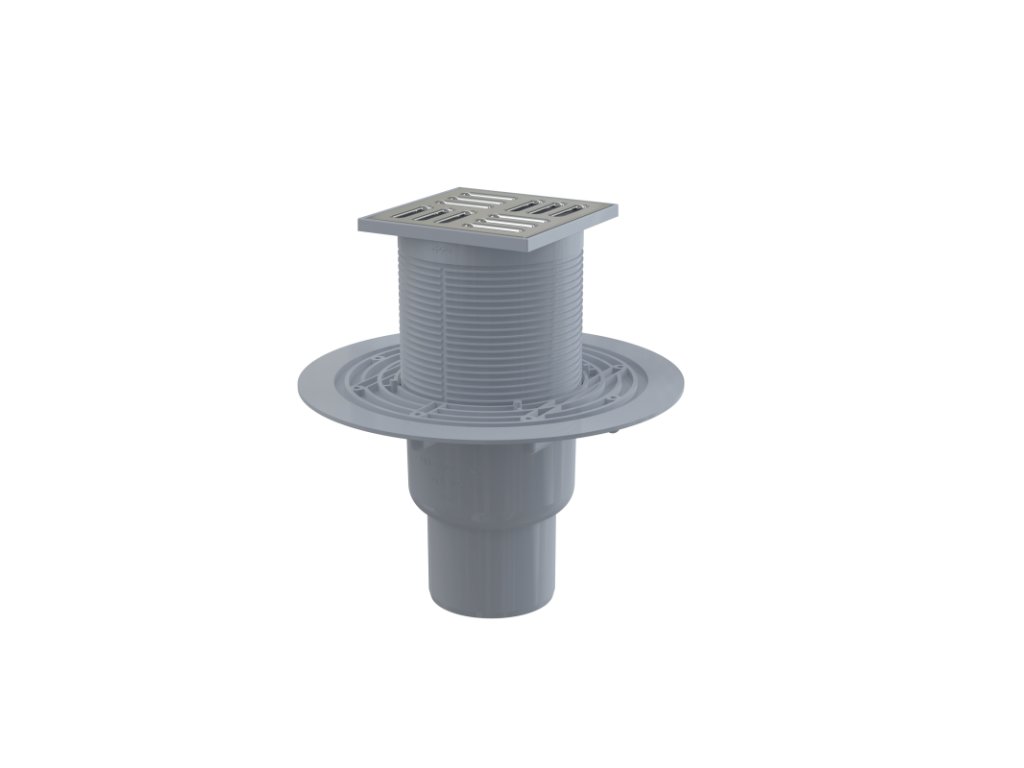 ALCA Podlahová vpust 105×105/50/75 mm přímá, mřížka nerez, kombinovaná zápachová uzávěra SMART APV2321