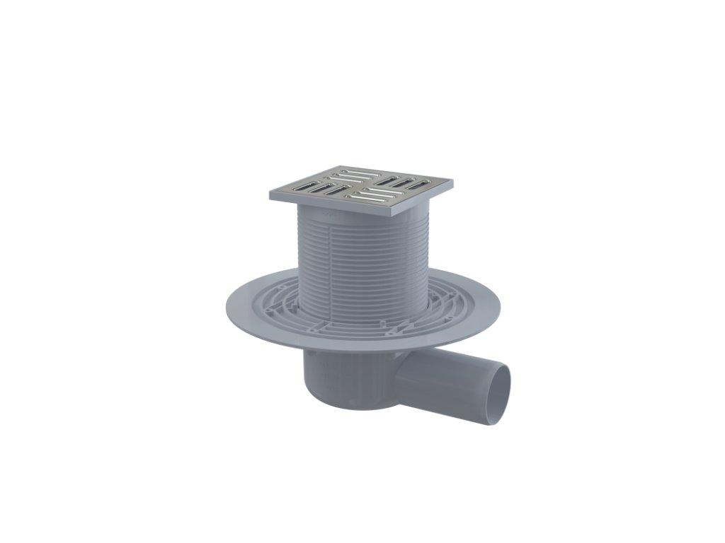 ALCA Podlahová vpust 105×105/50 mm boční, mřížka nerez, kombinovaná zápachová uzávěra SMART APV1321