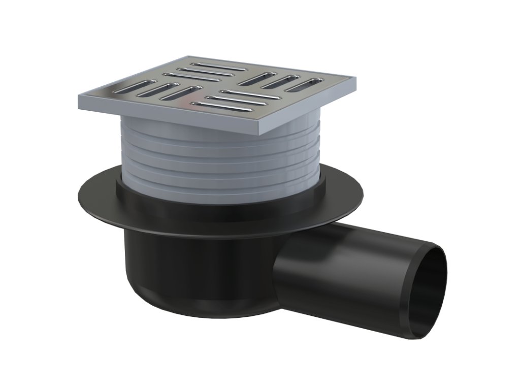 ALCA Podlahová vpust 105×105/50 mm boční, mřížka nerez, vodní zápachová uzávěra APV26