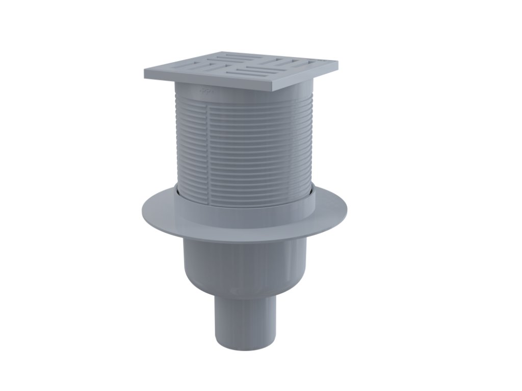 ALCA Podlahová vpust 105×105/50 mm přímá, mřížka šedá, vodní zápachová uzávěra APV6111