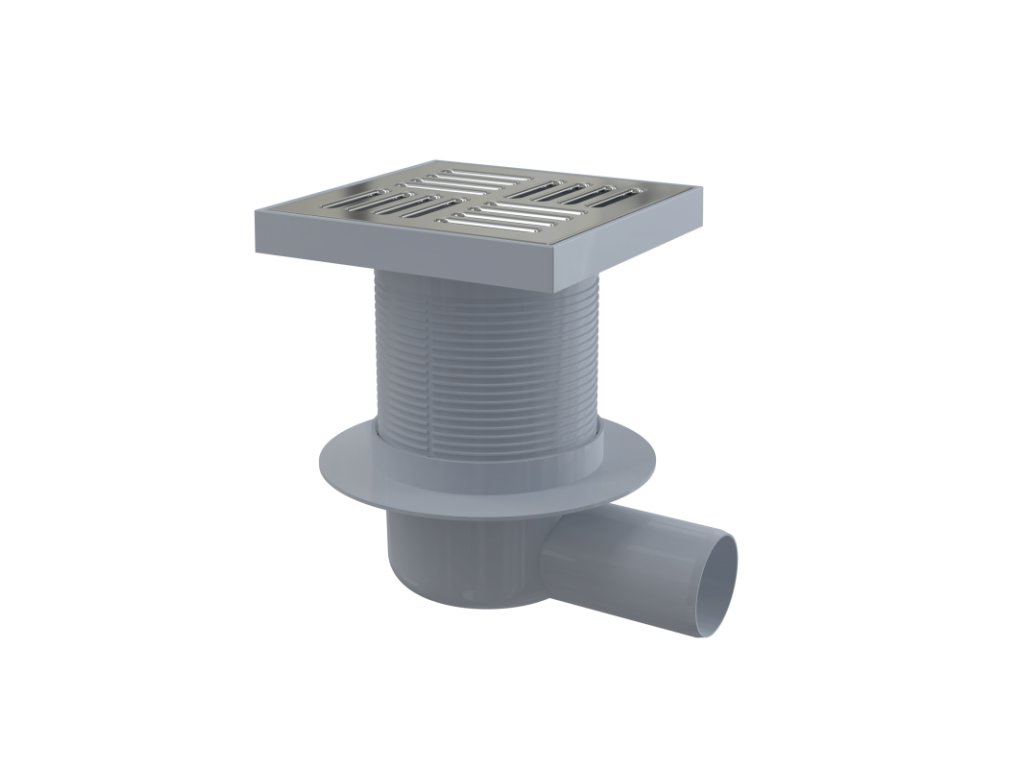 ALCA Podlahová vpust 150×150/50 mm boční, mřížka nerez, vodní zápachová uzávěra APV5411