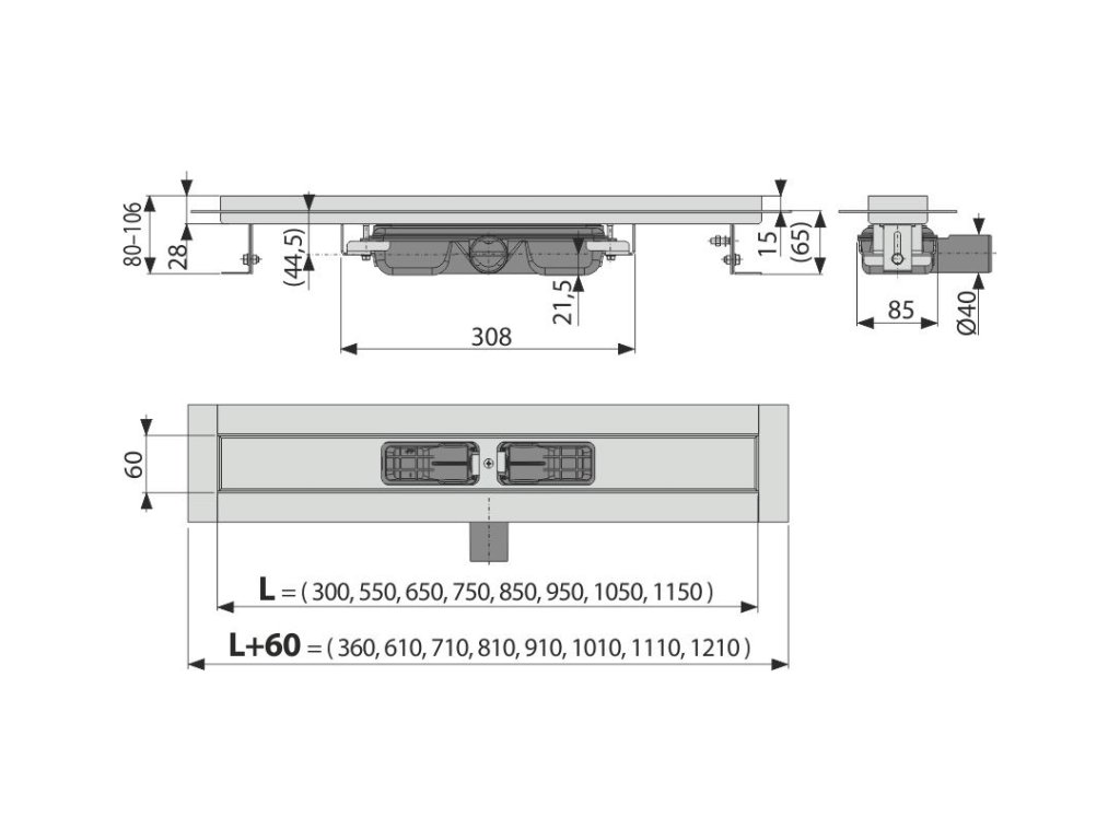 ALCA Podlahový žlab s okrajem pro plný rošt APZ106-650
