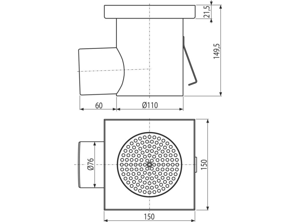 - Materiál vpusti: nerezová ocel 1,5 mm, DIN 1.4301