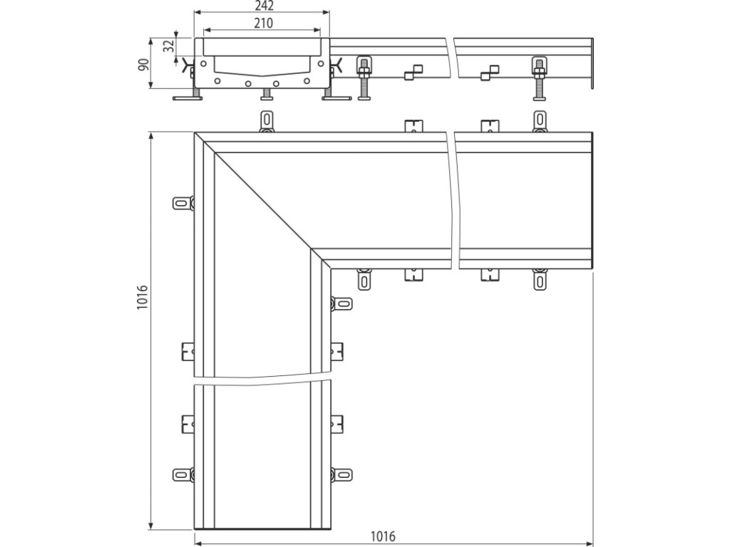 ALCA Průmyslový krabicový žlab rohový 1 m, nerez AISI 316L APR6-0221-210R