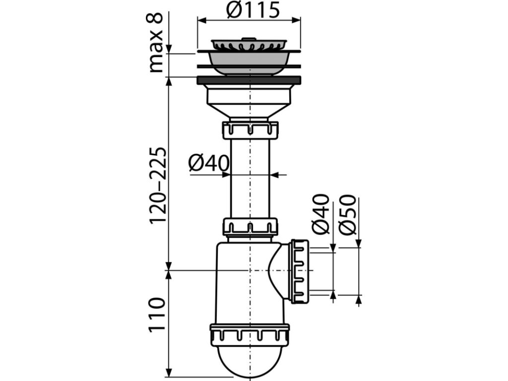ALCA Sifon dřezový DN 40/50 s nerezovou mřížkou Ø 115 mm A446-DN50/40