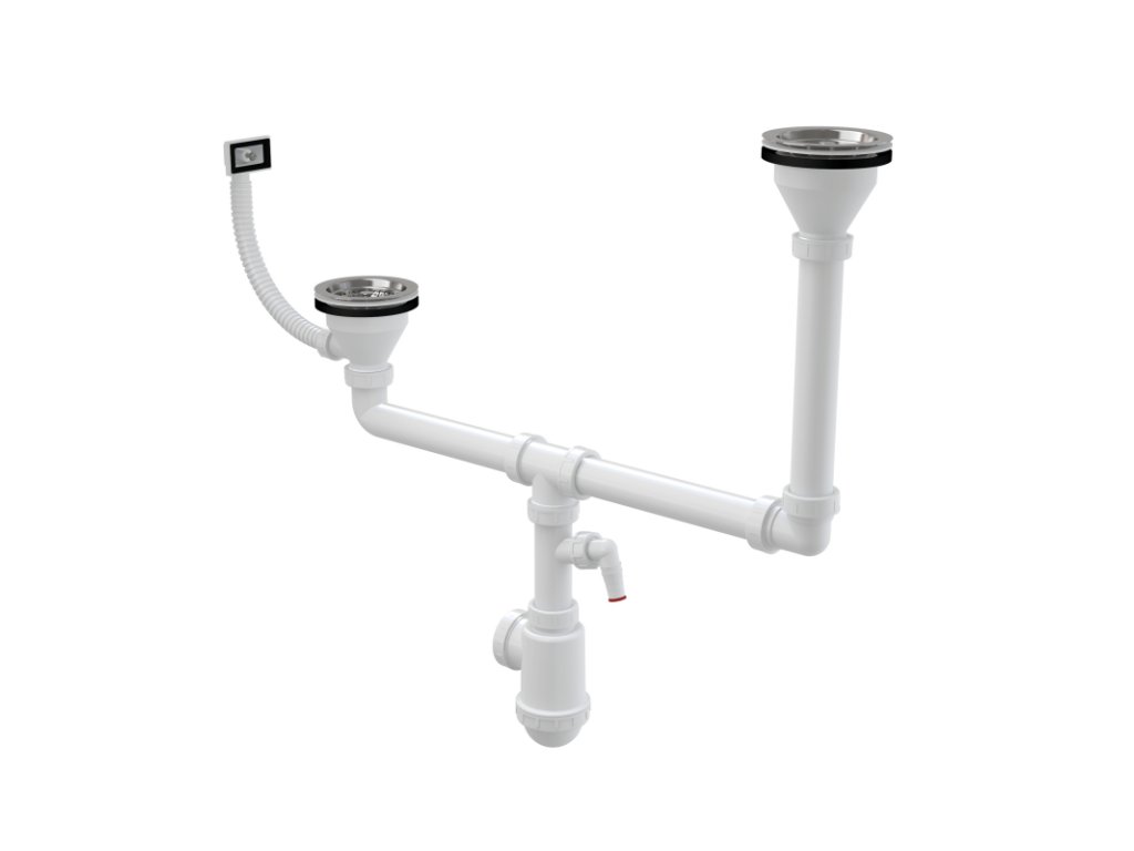- Pro dvoudílné dřezy s rozdílnou hloubkou a přepadem