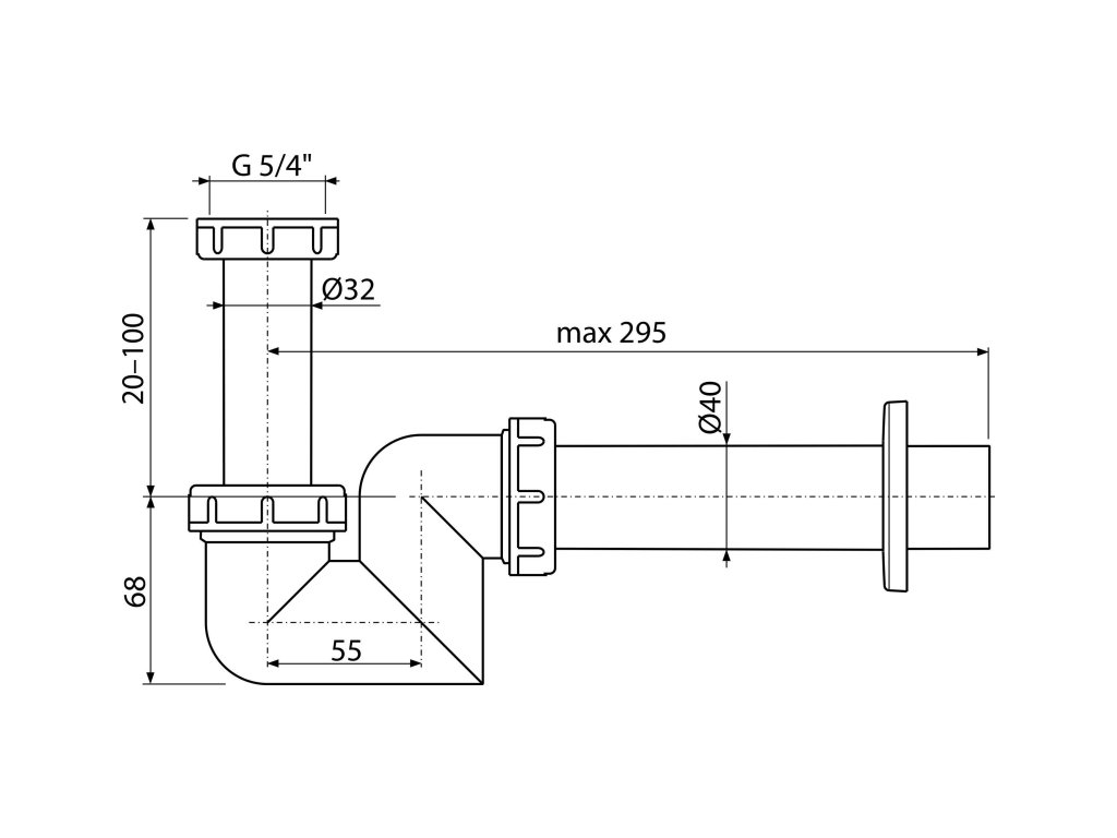 ALCA Sifon umyvadlový a bidetový DN 40 s převlečnou maticí G 5/4", plast A45F-DN40