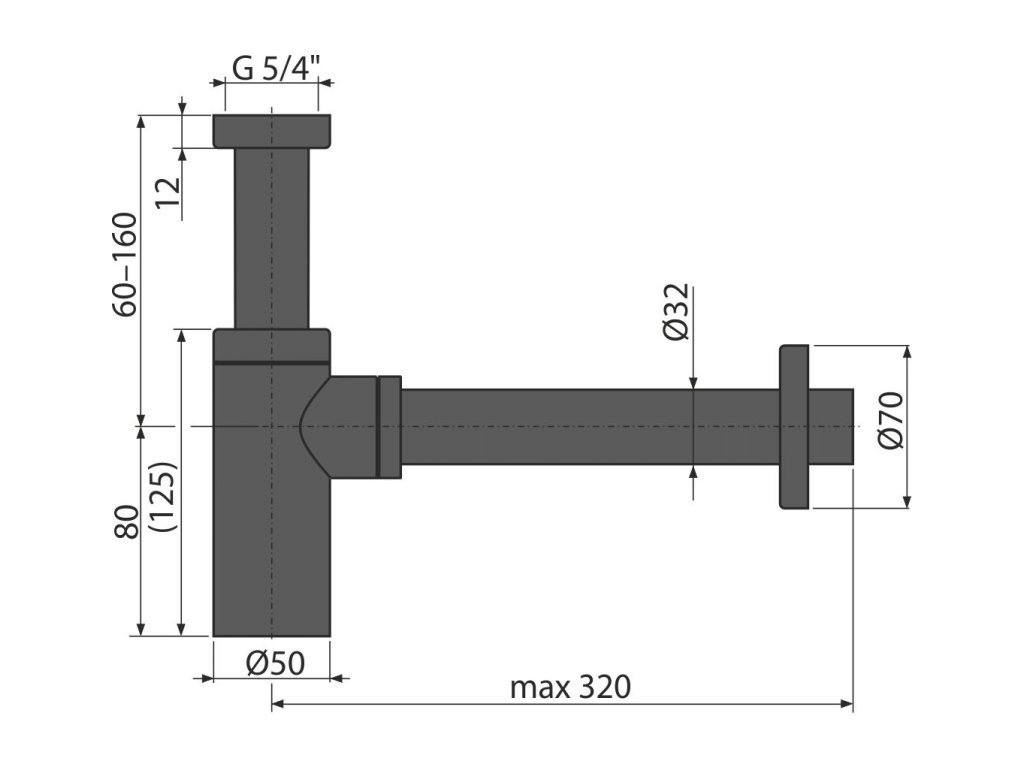 ALCA Sifon umyvadlový DN 32 DESIGN, kulatý, kov, černá-mat A400BLACK