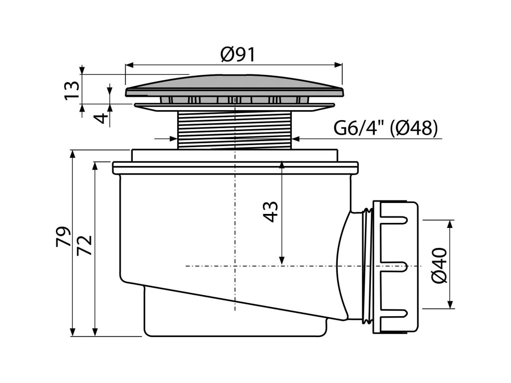 ALCA Sifon vaničkový, pro otvor 60 mm, DN 40, krytka Ø 91 mm, plast, chrom-lesk A47CR-60