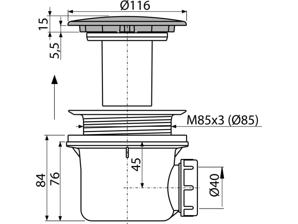 - Pro sprchové vaničky s odtokovým otvorem Ø90 mm