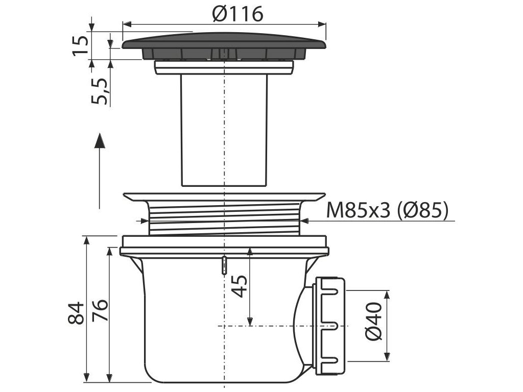 ALCA Sifon vaničkový, pro otvor 90 mm, DN 40, kov, černá-mat A49BLACK