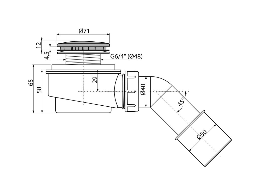 - Pro sprchové vaničky s odtokovým otvorem Ø50 mm