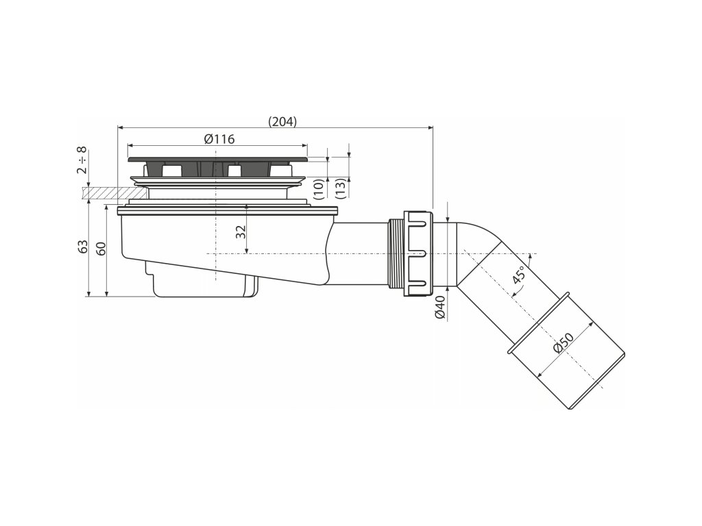- Pro sprchové vaničky s odtokovým otvorem Ø90 mm