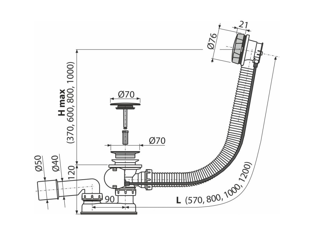 ALCA Sifon vanový automat, délka 57 cm, plast/kov, chrom-lesk A55KM