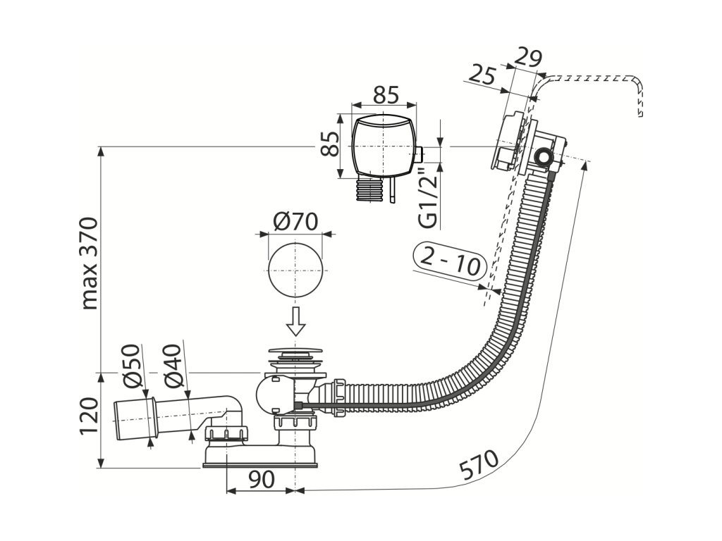 - Pro vany s odtokovým otvorem Ø52 mm