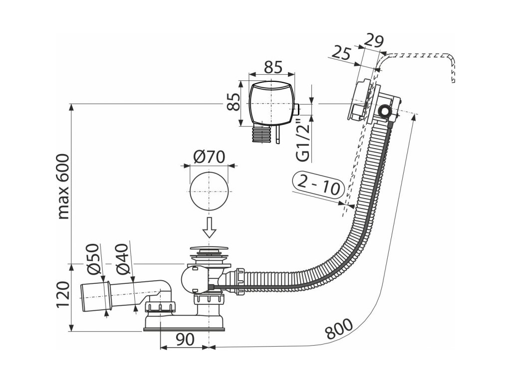 - Délka vanového sifonu 80 cm