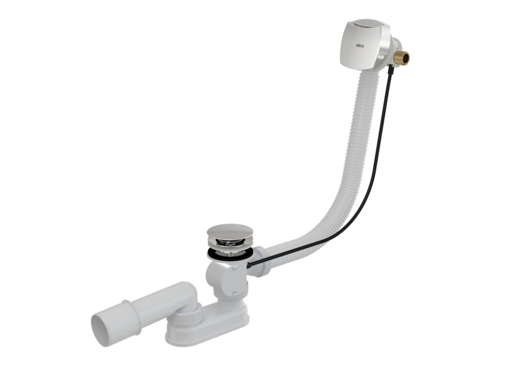ALCA Sifon vanový automat s napouštěním přepadem pro silnostěnné vany, délka 57 cm, kov, chrom-lesk A565KM1