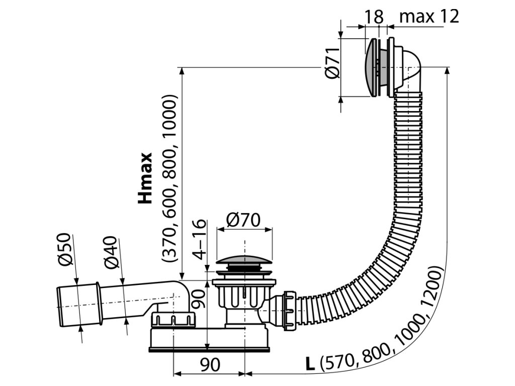 - Délka vanového sifonu 80 cm