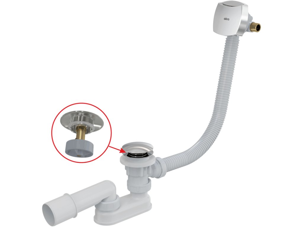 ALCA Sifon vanový CLICK/CLACK s napouštěním přepadem pro silnostěnné vany, délka 80 cm, plast, chrom-lesk A509CKM-80