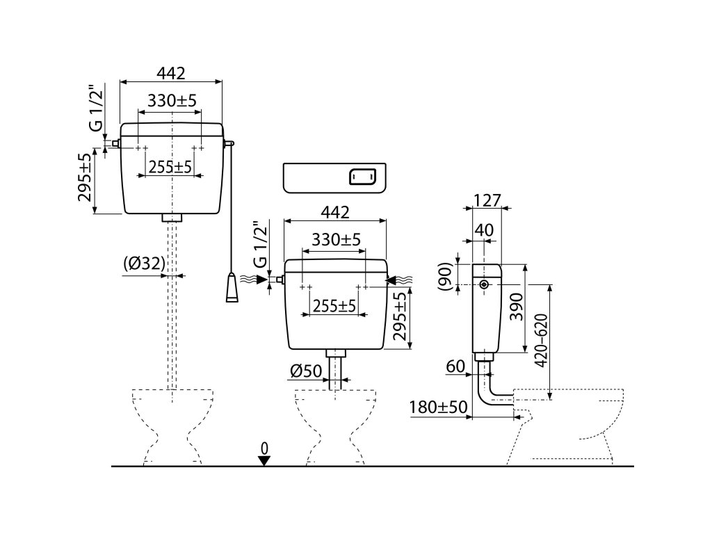- Splachovací set pro nízko položenou nádržku (tlačítko)