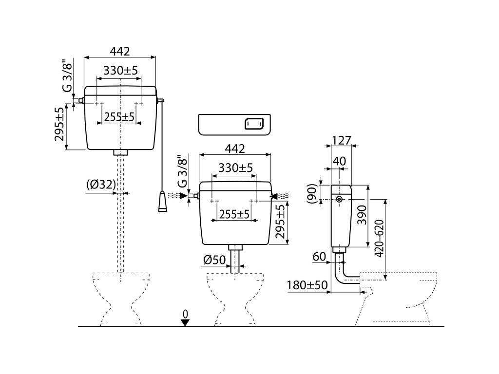 - Splachovací set pro nízko položenou nádržku (tlačítko)