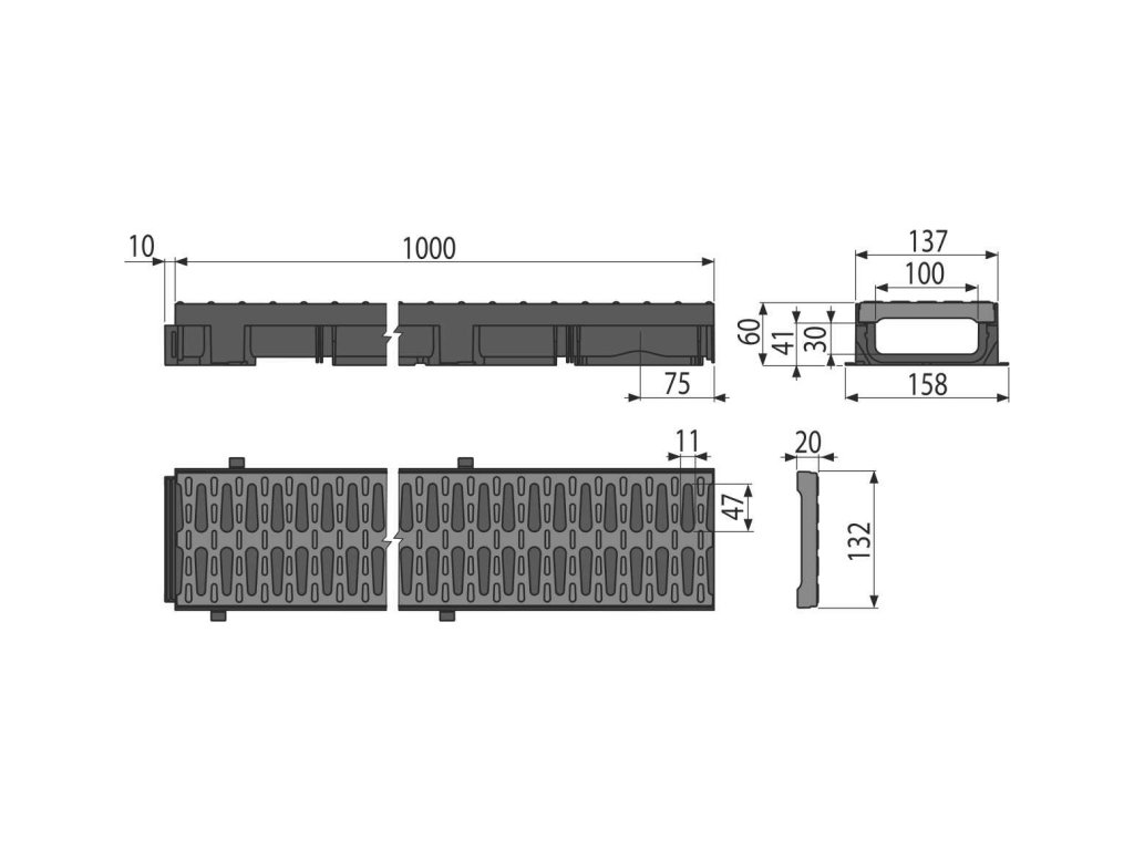 - Rošt plastový – šířka vtokové štěrbiny 12 mm