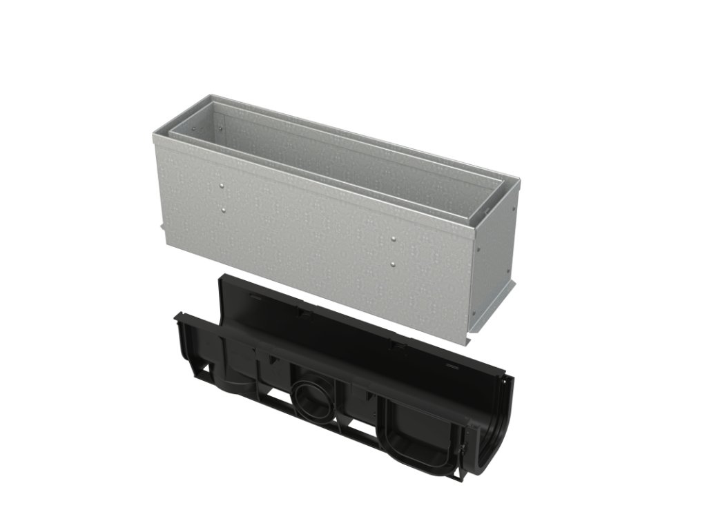 - Materiál žlabu: polypropylen plněný mastkem odolný proti mechanickému, chemickému a tepelnému poškození