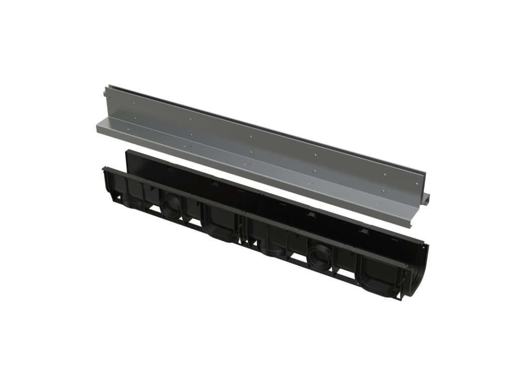 - Materiál žlabu: polypropylen plněný mastkem odolný proti mechanickému, chemickému a tepelnému poškození