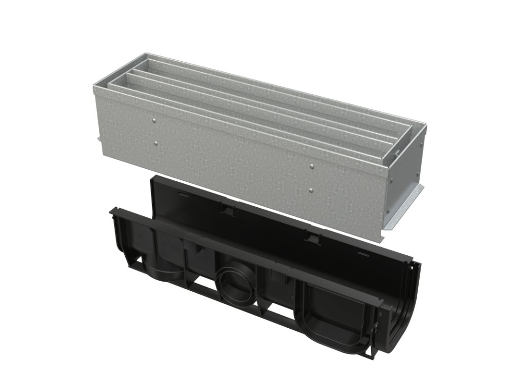 ALCA Venkovní žlab štěrbinový se symetrickým revizním nástavcem 100 mm, pozinkovaná ocel AVZ101S-R123R