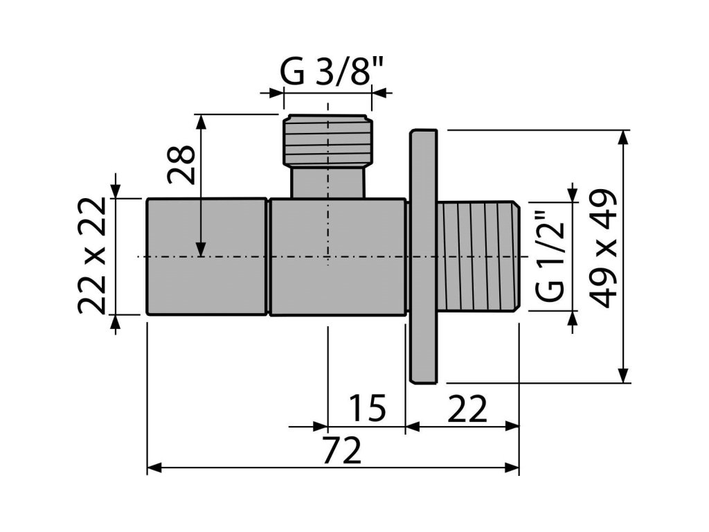 ALCA Ventil rohový 1/2" × 3/8", hranatý, chrom-lesk ARV002