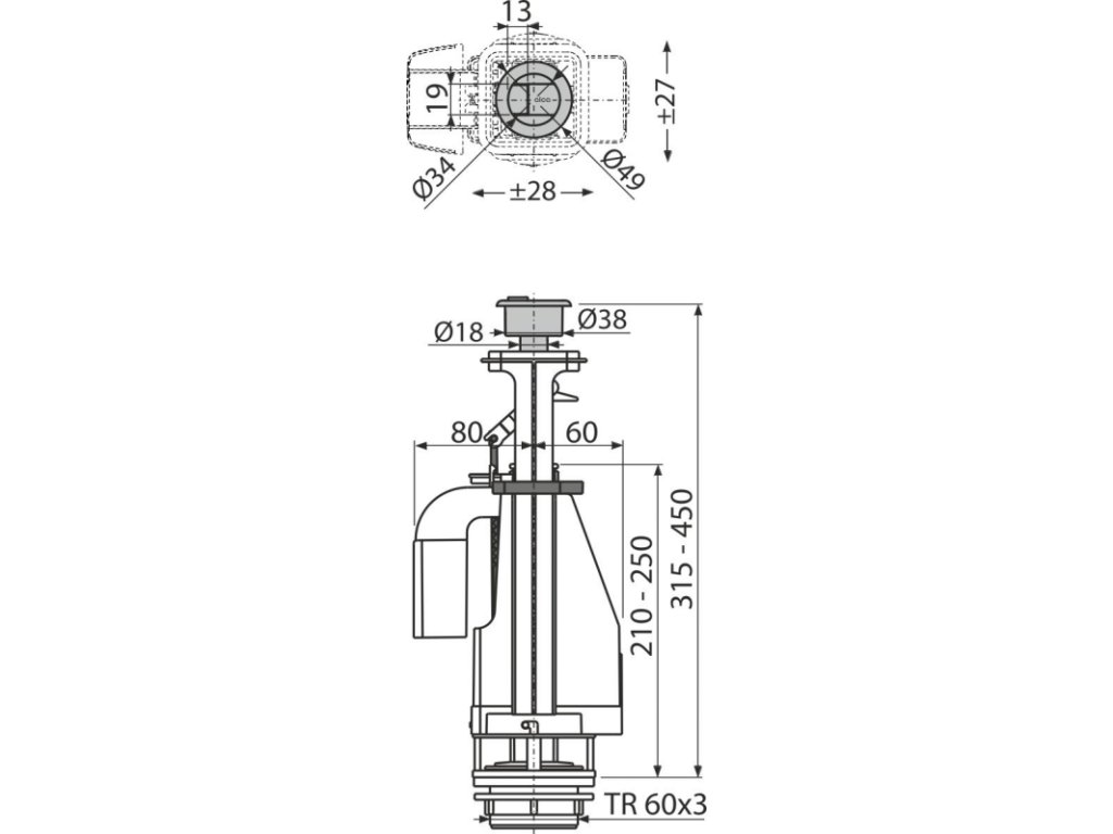 ALCA Vypouštěcí ventil s dvoutlačítkem A08A