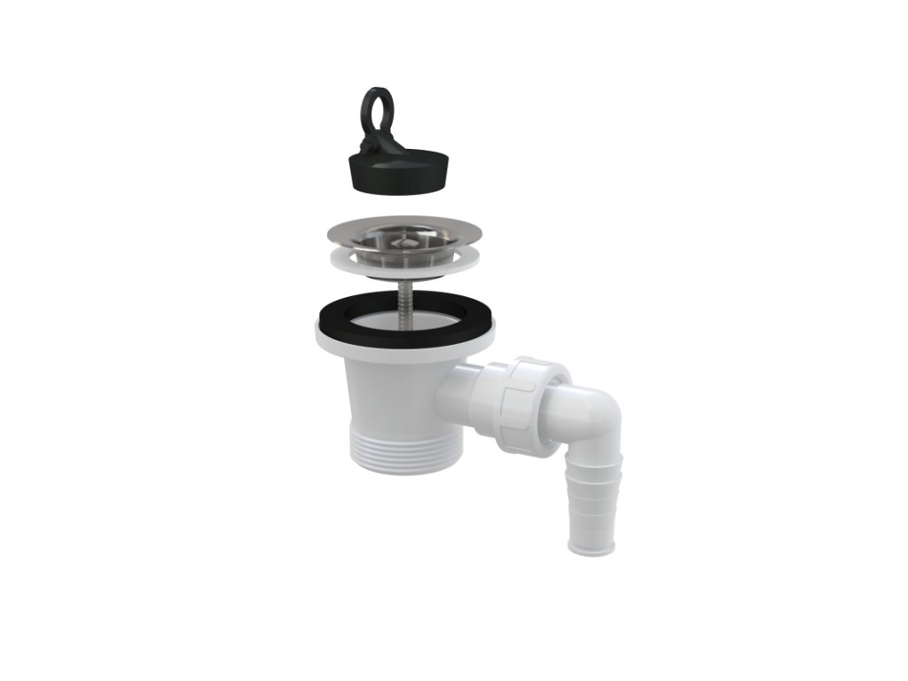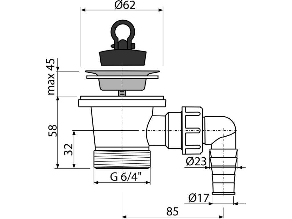 ALCA Výpust dřezová G 6/4" s přípojkou Ø 17–23 mm, nerezovou mřížkou Ø 62 mm, pryžová zátka A31P