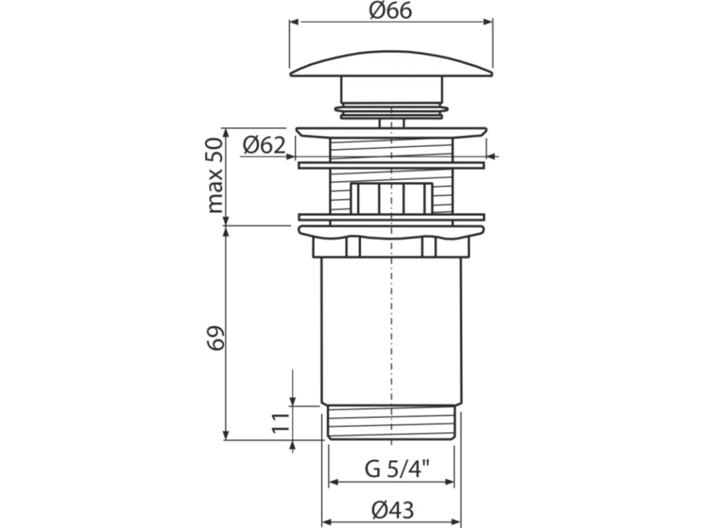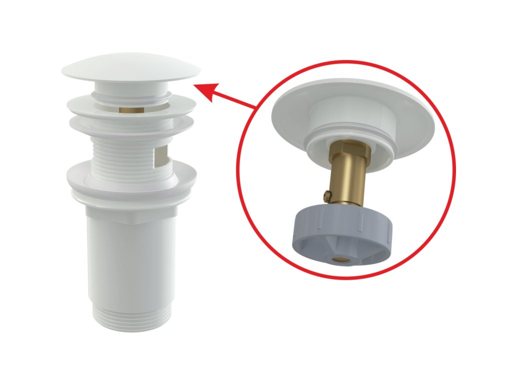 ALCA Výpust umyvadlová CLICK/CLACK G 5/4" s přepadem, velká zátka, kov, bílá-lesk A392B