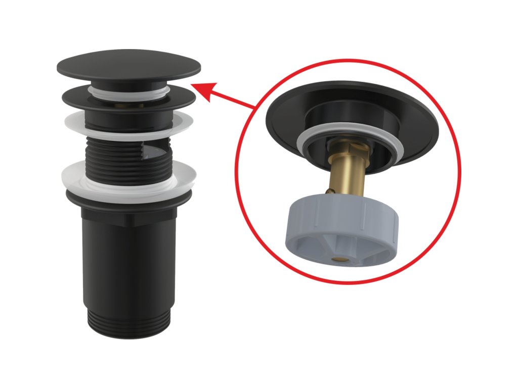 ALCA Výpust umyvadlová CLICK/CLACK G 5/4" s přepadem, velká zátka, kov, černá-mat A392BLACK
