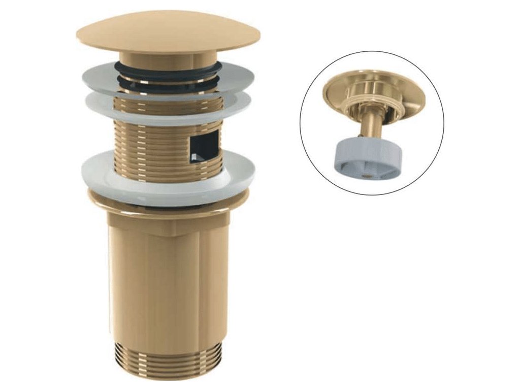 ALCA Výpust umyvadlová CLICK/CLACK G 5/4" s přepadem, velká zátka, kov, GOLD-lesk A392-G-P